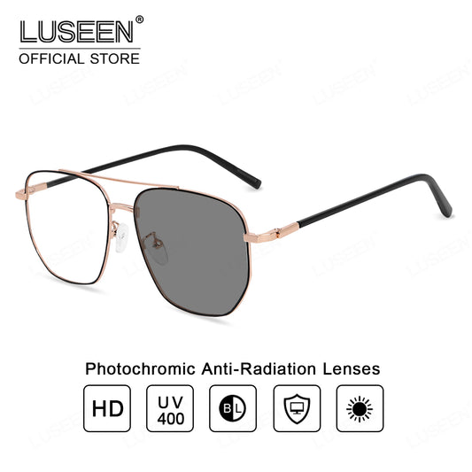 LUSEEN AG2233 New Anti Radiation Glasses Photochromic Computer Glasses Metallic Frame Replaceable Lens Fashion Unisex Glasses