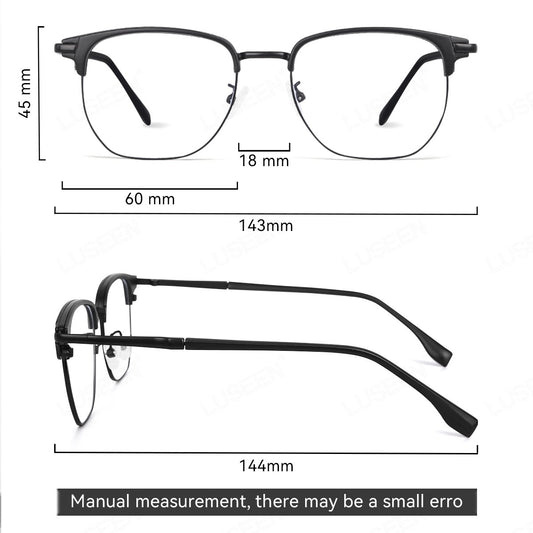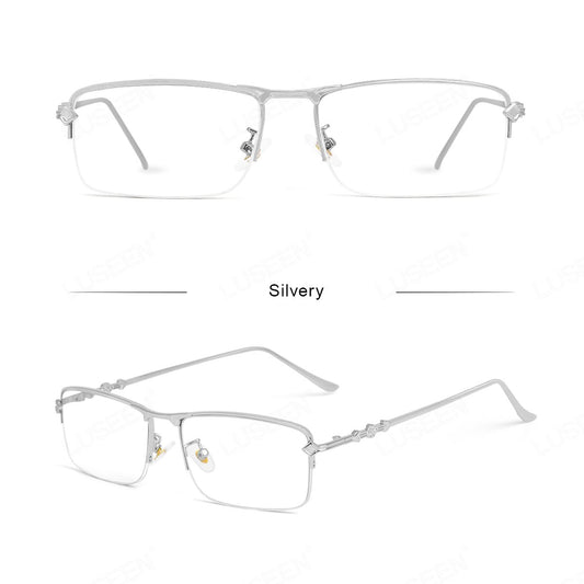 LUSEEN AG2248 Photochromic Anti-Radiation Eyeglasses Unisex Replaceable Lens Rectangle Semi Rimless Frame