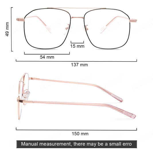 LUSEEN Anti Radiation Eye Glasses Anti Blue Lens Metallic Frame for Men and Women AG8806