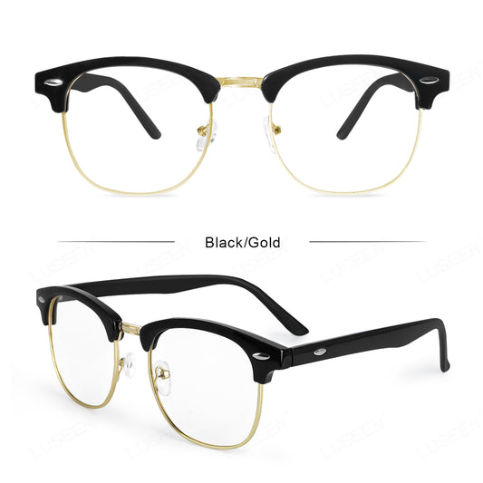 LUSEEN Eyewear Round Anti Radiation Blue Lens Eyeglass sa Metallic Frame para sa Mga Lalaki at Babae AG8804