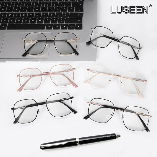 LUSEEN Photochromic Anti Radiation Eyeglass Para sa Babae Mga Lalaki Transition Eyewear Napalitan ng Lens Oversized Eye Glasses AG2225