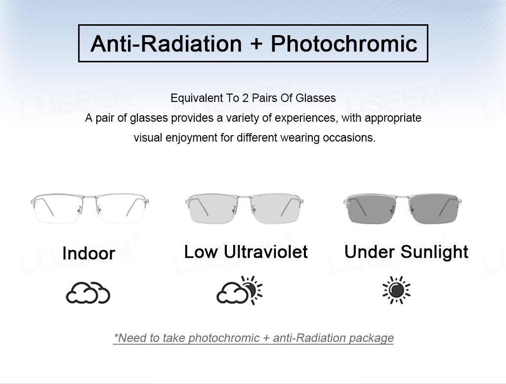 LUSEEN AG2247 Photochromic Anti-Radiation Eyeglasses Unisex Replaceable Lens Fashion Semi Rimless Rectangle Frame